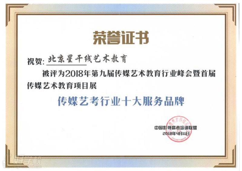 北京星干线艺考是中国影视高考培训联盟的常务理事单位,在传媒艺考行业历年年会全国近千家机构评选中,分别荣获“传媒艺考行业十大服务品牌”“十佳培训机构”等称号,是腾讯教育知名素质教育品牌,得到诸多高校专家、同仁和社会相关人士的高度认可和一致赞扬。