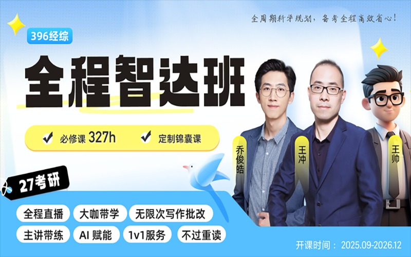 适用人群:备考周期长但易拖延、疑问难解决、学习无章法的 27 考研 396 经综考生。