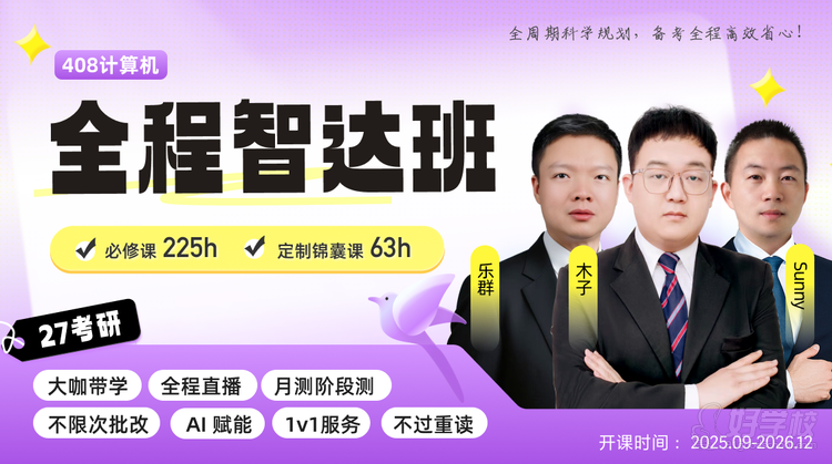二讲老师:A + 级专业二讲老师团队,多为双一流计算机硕士背景,考研辅导经验丰富,每月会参加教学培训、功底考试,还会参与季度专业规划能力 PK 赛,提供 1V1 服务。