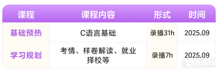 学习规划(2025.09,录播 7H):包含考情、样卷解读、就业择校等内容。