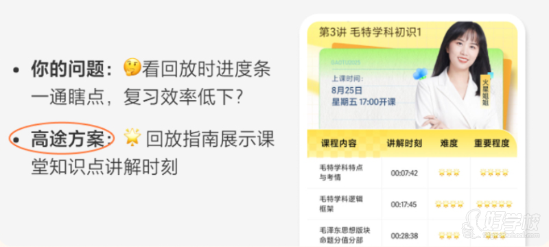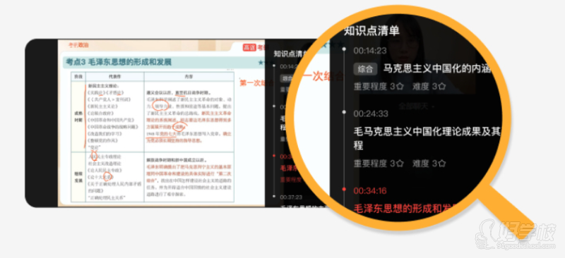 高途方案视频侧栏展示本节知识,快速跳转至对应位置