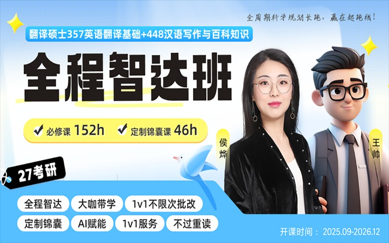 适用人群:备考周期长易拖延、疑问难解内耗多、学习无章法难抓重点的 27 考研翻译硕士考生。