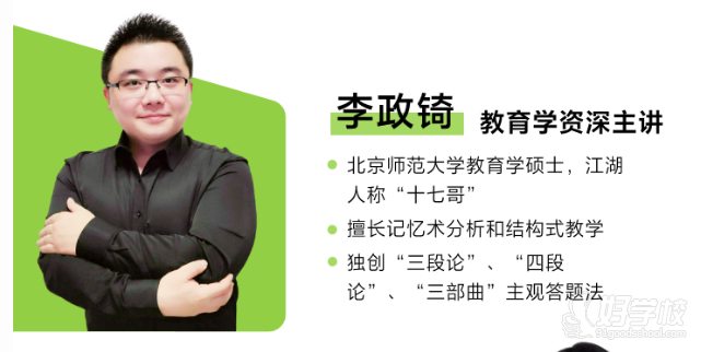 李政锜:北京师范大学教育学硕士(人称 “十七哥”),独创 “三段论”“四段论” 等主观答题法,擅长记忆术与结构式教学。