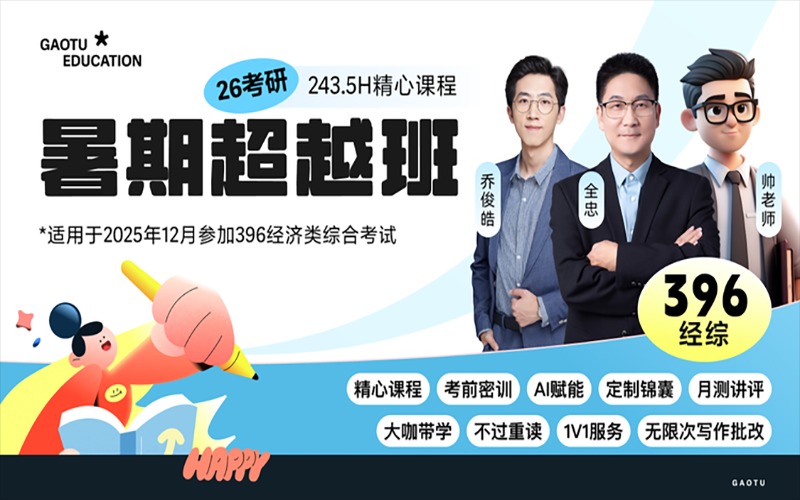 本课程适用于 2025 年 12 月参加 396 经济类综合考试的考生,以 “超越常规备考” 为核心,通过 243.5H 精心课程、大咖师资团队、定制化服务及 AI 技术赋能,助力考生冲刺高分、实现名校目标。