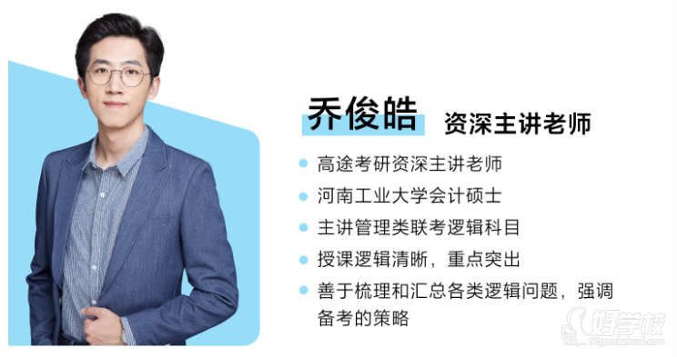 乔俊皓:高途考研资深主讲,河南工业大学会计硕士,主讲管理类联考逻辑,授课逻辑清晰,擅长梳理逻辑问题与备考策略。
