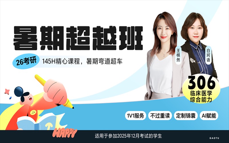 本课程专为参加 2025 年 12 月考研的临床医学考生设计,以 145H 精心课程为核心,搭配名师带学、定制服务与 AI 赋能,助力暑期实现备考弯道超车,解决西综备考中的体系复杂、基础薄弱、效率低下等痛点。