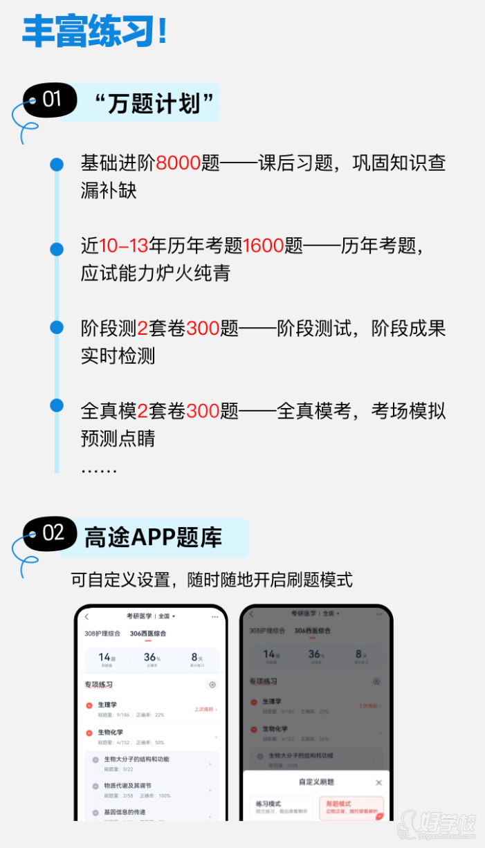 通过 “万题计划” 与高途 APP 题库,满足不同阶段练习需求,强化应试能力。