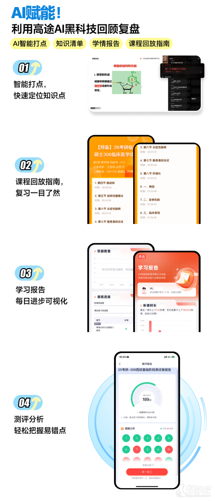 借助高途 AI 技术提升复习效率,实现学习过程可视化与精准复盘。
