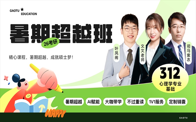 优质师资团队:汇聚资深主讲老师,司马紫衣(北京大学应用心理硕士,主讲实验心理学、心理统计学)、文文老师(北京师范大学应用心理硕士,主讲普通心理学、发展心理学等)、叶凤阁(北京师范大学应用心理硕士,主讲社会心理学、心理测量学)、丁爽老师,理论扎实且熟悉试题规律,授课风格多样,兼顾专业性与趣味性。