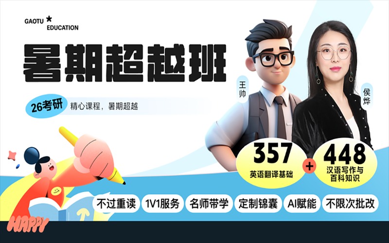 本课程聚焦 26 考研翻译硕士的 357 英语翻译基础与 448 汉语写作与百科知识两大科目,通过暑期专项集训与二轮考题剖析,助力考生实现备考突破,且享有不过重读、1V1 服务等多重确保。
