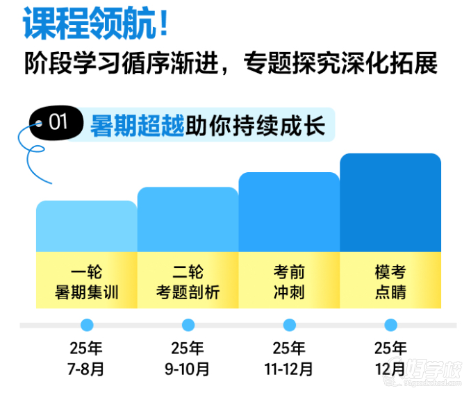 AI 赋能,高效复盘:借助高途 AI 黑科技,实现智能打点快速定位知识点、回放指南让复习要点清晰、学习报告可视化每日进步、线上测评分析轻松把握易错点,帮助学员高效回顾学习内容。