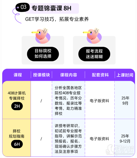 课程权益:课程有效期内支持无限回放和离线缓存,结课后再送 90 天有效期;有效期内可享受老学员扩科福利,可换课 1 次(需扣除相关费用);满足所购科目未达国家线、参加 2025 年 12 月研究生考试、初试前课程听课率达 80% 以上(不含离线缓存)条件,可免费重读,重读课程与原报名科目、班型对应,需在国家线公布后 30 天内申请。