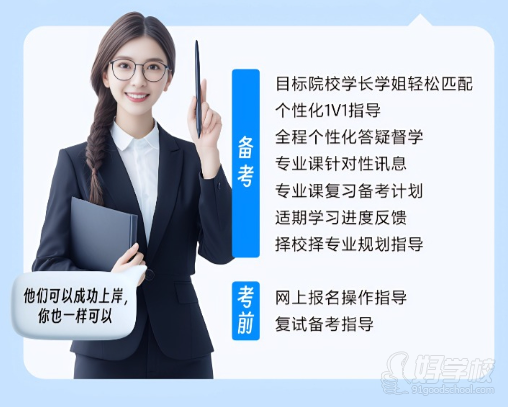目标院校学长学姐轻松匹配个性化1V1指导全程个性化答疑督学专业课针对性讯息