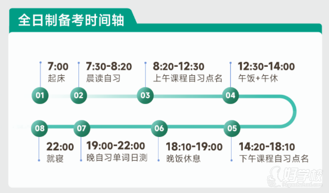 吃住学一体,全日制半封闭式集训,通过线上线下结合的学习方式,全面复习系统化的知识、加强应试技巧训练、进行模拟测试等举措,全面增强考生的整体实力和竞争优势。