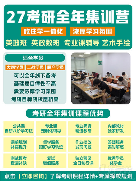 适配人群:二战、脱产考生、大四,想要封闭式集中学习的学生。