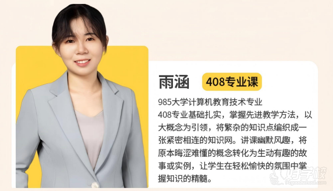 985大学计算机教育技术专业408专业基础扎实,掌握先进教学方法,以大概念为引领,将繁杂的知识点编织成一张紧密相连的知识网。讲课幽默风趣,将原本晦涩难懂的概念转化为生动有趣的故事或实例,让学生在轻松愉快的氛围中掌握知识的精髓。