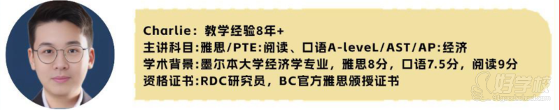 主讲科目:雅思/PTE:阅读、口语A-leveL/AST/AP:经济