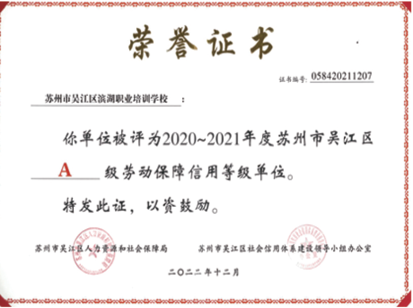 苏州滨湖教育成立于2008年,下设多所职业培训学校、教育培训中心。学校坚持紧贴当地经济社会发展需要办学,结合产业特色,在政府部门领导与支持下,与吴江区总工会职校联合开展职工学历教育、职业资格、职业技能、创业培训、管理培训、免费培训等成人继续教育。学校先后入驻吴江区人力资源产业园、南通市总工会、徐州市总工会、长三角(汾湖)人力资源产业园、昆山人力资源产业园、平湖市人力资源服务产业园等,年培训各类学员30000多人,已成为苏州地区培训规模较大、开设课程较多的综合性培训中心。