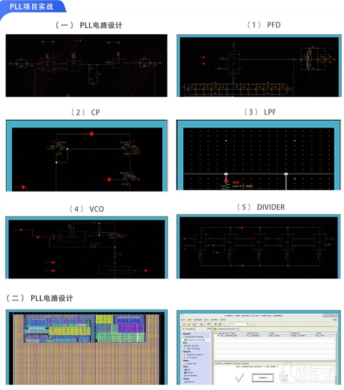 课程以市面主流工艺 180nm/130nm/40nm/28nm/22nm为教学对象,经过10多位 模拟资深工程师 ,反复与用人企业沟通实际需求,打造了包含: