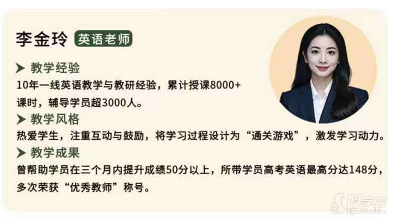 教学经验:10 年一线英语教学与教研经验,累计授课 8000 + 课时,辅导学员超 3000 人。
