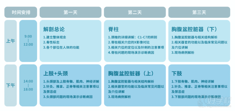 培训旨在全方位、深层次地帮助学员系统掌握人体解剖知识,从骨骼的架构、肌肉的起止与走向,到神经的分布及脏器的位置,无一遗漏。通过精准的理论讲解与大量实践,让学员能够在临床操作中,精准避开解剖雷区,极大提升针灸推拿的安全性;同时,依据对人体结构的深刻理解,优化推拿力道与针灸穴位定位,显著提高治疗效果,真正实现 “安全 + 疗效” 的双重确保。
