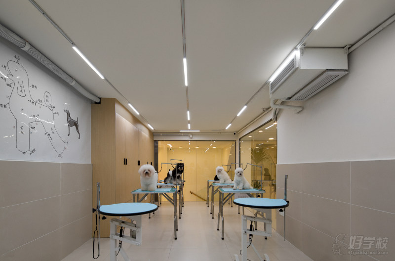 课程内容丰富全面,涵盖宠物美容、基础医疗、高端护理、特色技能等多个板块,具体包括:宠物基础洗护全流程,详细讲解并实操洗耳、吹毛、开结、拉毛、指甲修剪、剃脚底毛、剃腹底毛等核心操作,确保学员能够熟练掌握每一个洗护环节,打造专业、规范的洗护服务;门店常见基础医疗知识,重点讲解宠物疫苗接种、日常驱虫方法、常见皮肤病识别与基础护理等内容,帮助学员应对门店日常遇到的宠物健康问题,提升综合服务能力;门店高端SPA项目实操、无麻醉低敏洁牙技术、专业断甲技巧,以及握剪、运剪等基础美容工具使用练习,从基础技能到高端服务,全方位提升学员专业水平;此外,还增设宠物烘焙入门课程,让学员掌握简单的宠物零食制作技巧,丰富服务品类;同时重点教学考级拉姆装、泰迪、比熊、雪纳瑞、西施、马尔济斯等常见犬种的日常门店萌宠造型,贴合市场需求,让学员掌握热门造型技巧,提升就业竞争力;最后,新增猫咪低敏洗护课程,覆盖猫狗双领域,拓宽学员服务范围,让学员成为全能型宠物美容人才。