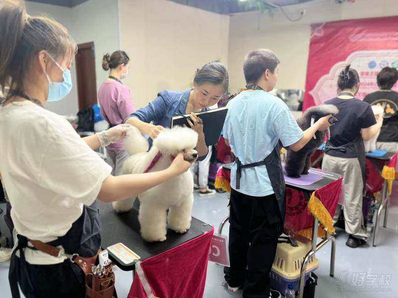 爱天使宠物美容培训学校赛场与实用兼顾。更精通店面实用造型修剪,10余种萌系泰迪头造型,韩系布朗熊、马尔济斯、西施、约克夏仙女造型,创意染色,宠物零食,宠物蛋糕,宠物SPA,宠物摄影等。