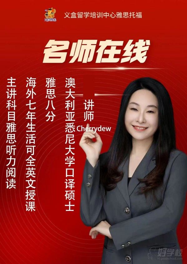 义盒留学语言规划中心成立于2019年,是由资深雅思老师wen成立的工作室,工作室成立初期 与北京 天津数十位一线老师在疫情期间为数百位雅思学员提供了优质课程服务。2023年义盒留学落户青岛黄岛灵山国际,课程模式由服务全网学员到本地扎根同时服务全国各地考生。目前已在青岛本地拥有两大校区工作室,场地面积达600平。工作室老师从线上到线下,都经过层层筛选,无论是师资背景,教学水平,教学成果,以及服务风格都是本地一线口碑。义盒留学以其严谨的教学态度,丰富的课程服务,以及极高的课程性价比在学生中广受推荐。