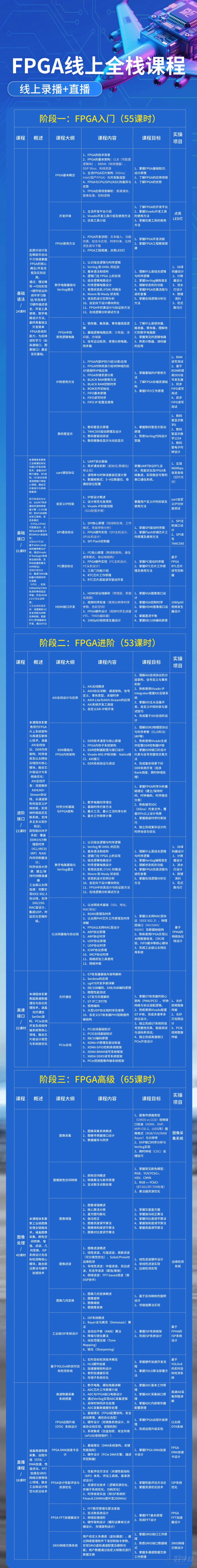 整个课程从基础到高阶,结合理论 + 实操,覆盖 FPGA 开发全流程与主流应用场景。