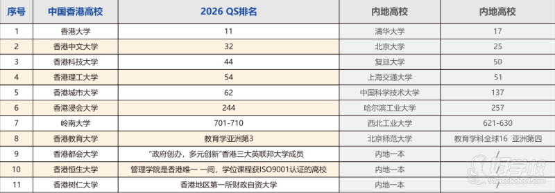 【世界排名(香港高校VS内地高校)】