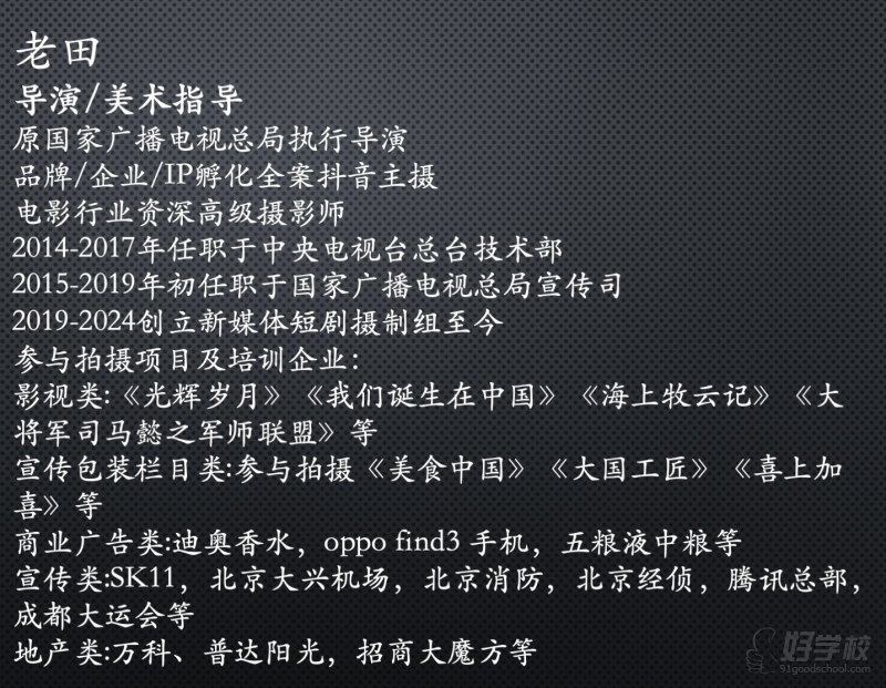北京电影学院老师一对一辅导,小班制教学,一班最多20人,视频机,无人机,影棚,录音棚都是业内高级水准,三个校区可选,全程以80%的实践为主,与平江路90%的商家达成合作,随时可以上机拍摄,推荐就业。