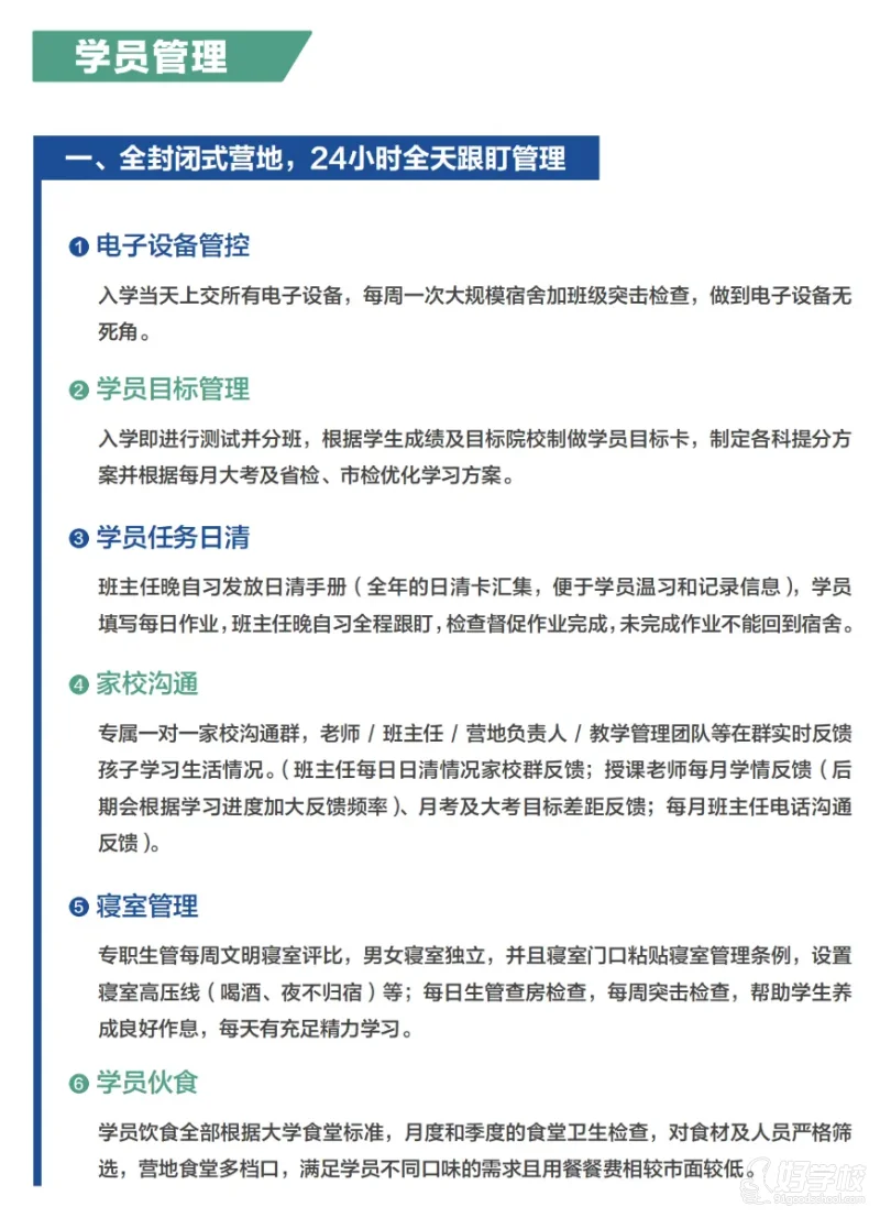 2.全面严格的教学管理:班主任、学管老师全天候陪伴,每日学习日清,在教学管理上滴水不漏让每一位学生的学习质量。确保学生的每一个问题都能得到老师的悉心解答。