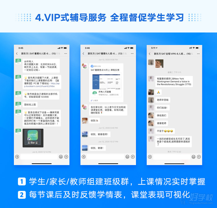 错过直播看回放、点对点课中指导