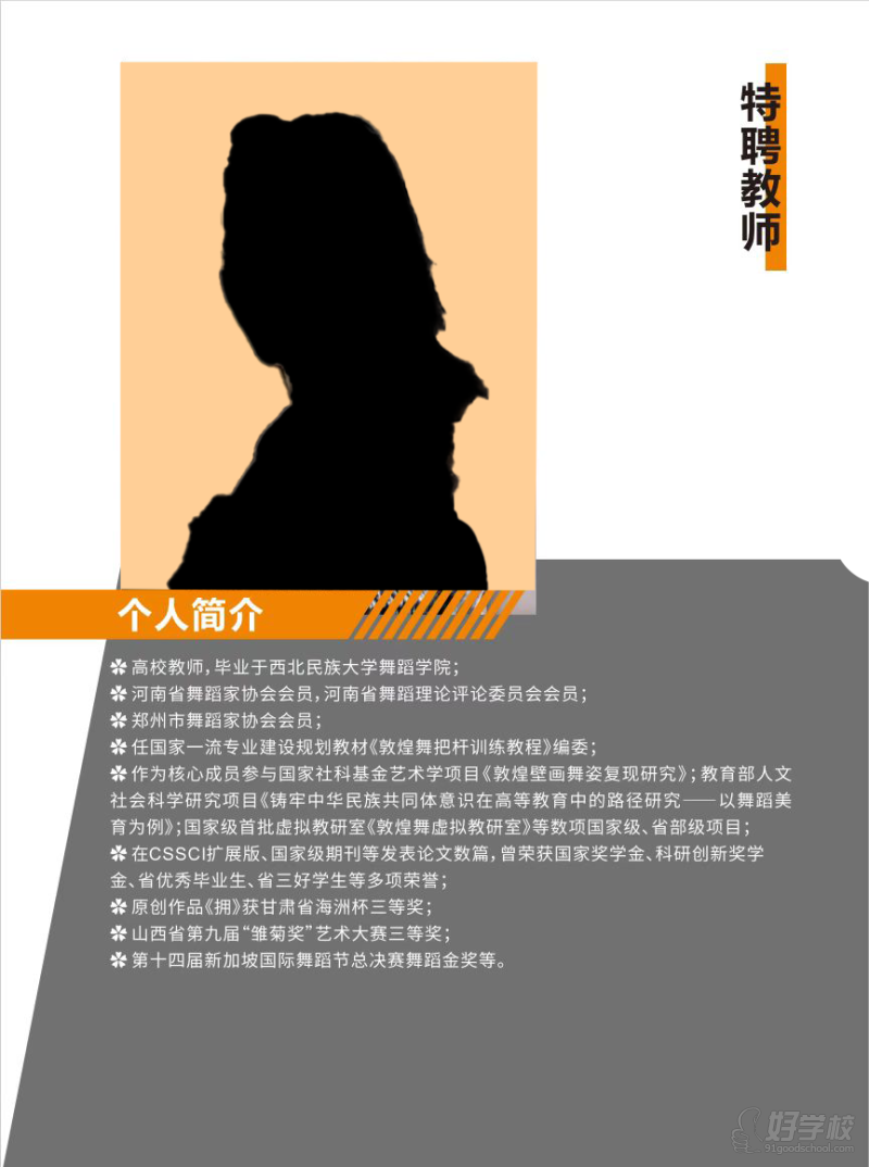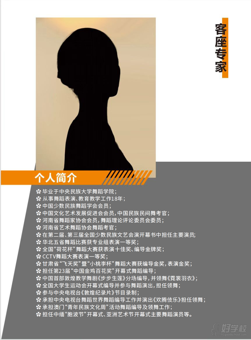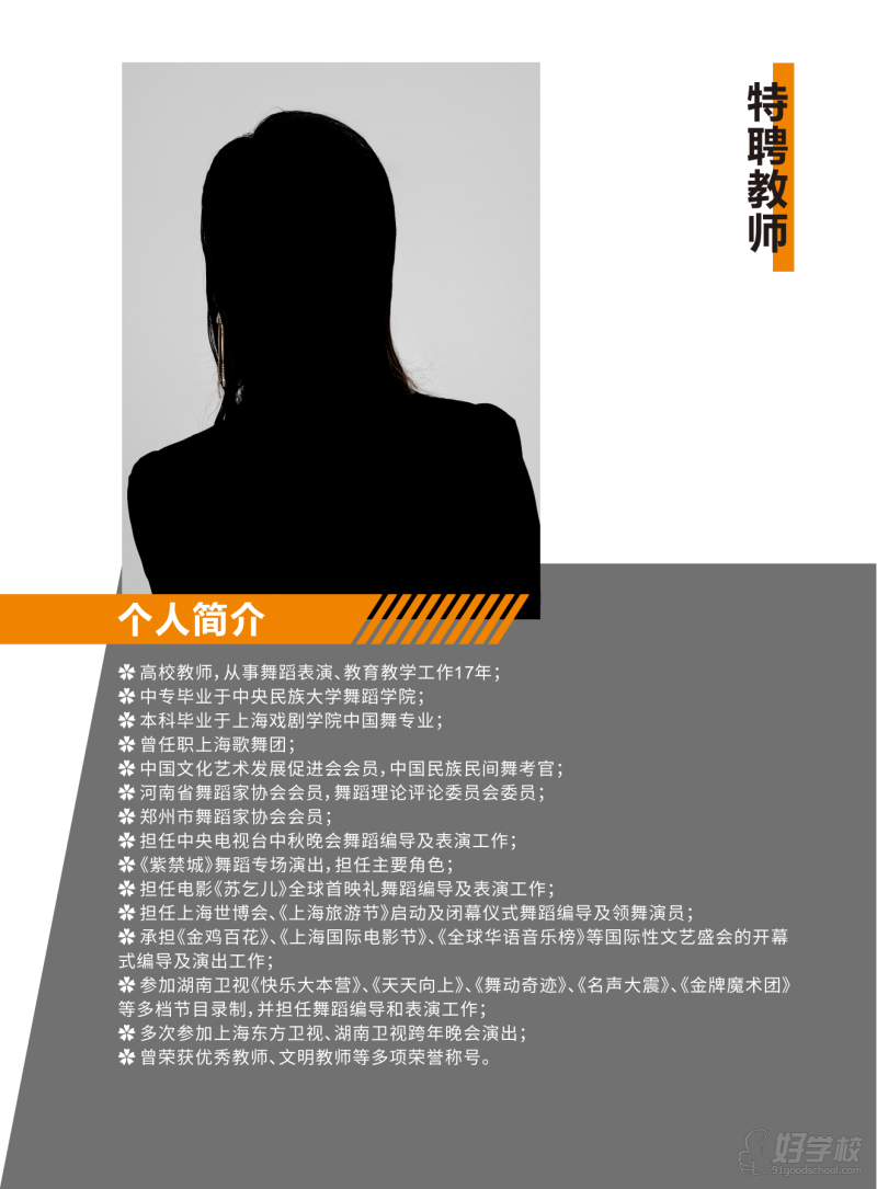 高校教师,从事舞蹈表演、教育教学工作17年;