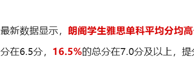 新数据显示,朗阁学生雅思单科平均分均高于大陆雅思官方单科平均分,85.5%的朗阁学生总分在6.5分,16.5%的总分在7.0分及以上,提分率更是破95.3%!