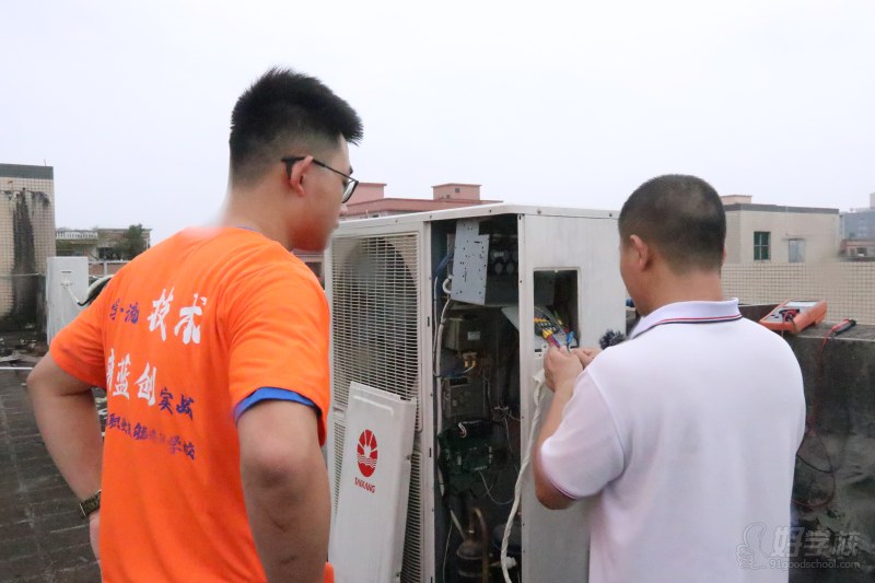 数字万用表、钳形电流表、兆欧表的使用方法及注意事项,压力表、各种阀门的使用方法,制冷专用设备真空泵等设备,讲解扩喇叭口等基础技术,实践扩喇叭口课氧气焊的焊接使用方法、使用技巧、注意事项,氧气焊的焊接使用方法、使用技巧、注意事项,实践氧气焊,练习焊接技术等。