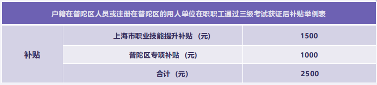 普陀区补贴: