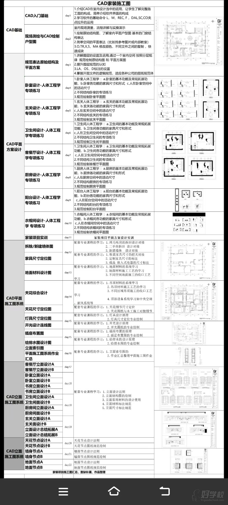 数量掌握CAD软件的运用,了解并掌握一套家装施工图的完整绘制流程,以及在此过程中对于方案思考的逻辑能力,从而能对接现场施工遇到的问题。