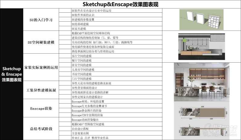掌握SU软件的运用,掌握各种家、工装空间效果图的表现