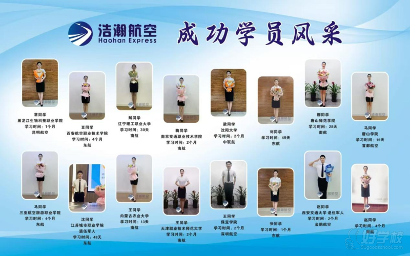 我司由国内知名航空服务单位教学高管、国内大型公司运营总监及教育资源丰富的企业领导组成。致力于解决国内大学生及退伍军人高质量就业工作。至今,浩瀚航空及母公司为全国上百家院校提供空乘就业指导服务,成功学员遍布国航、海航、东航、南航等大型航空公司空乘岗位。
