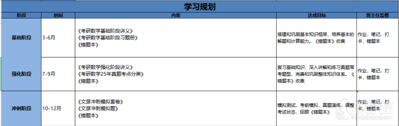 针对学员基础、目标院校及入学测试情况制定个性化年度月度学习计划,并进行实时动态调整。咨询档案查询、班主任约面、入学测试、专业院校考情分析、各科目全年学习计划+阶段学习计划