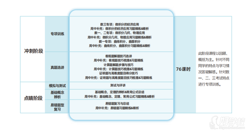 针对学员基础、目标院校及入学测试情况制定个性化年度月度学习计划,并进行实时动态调整。