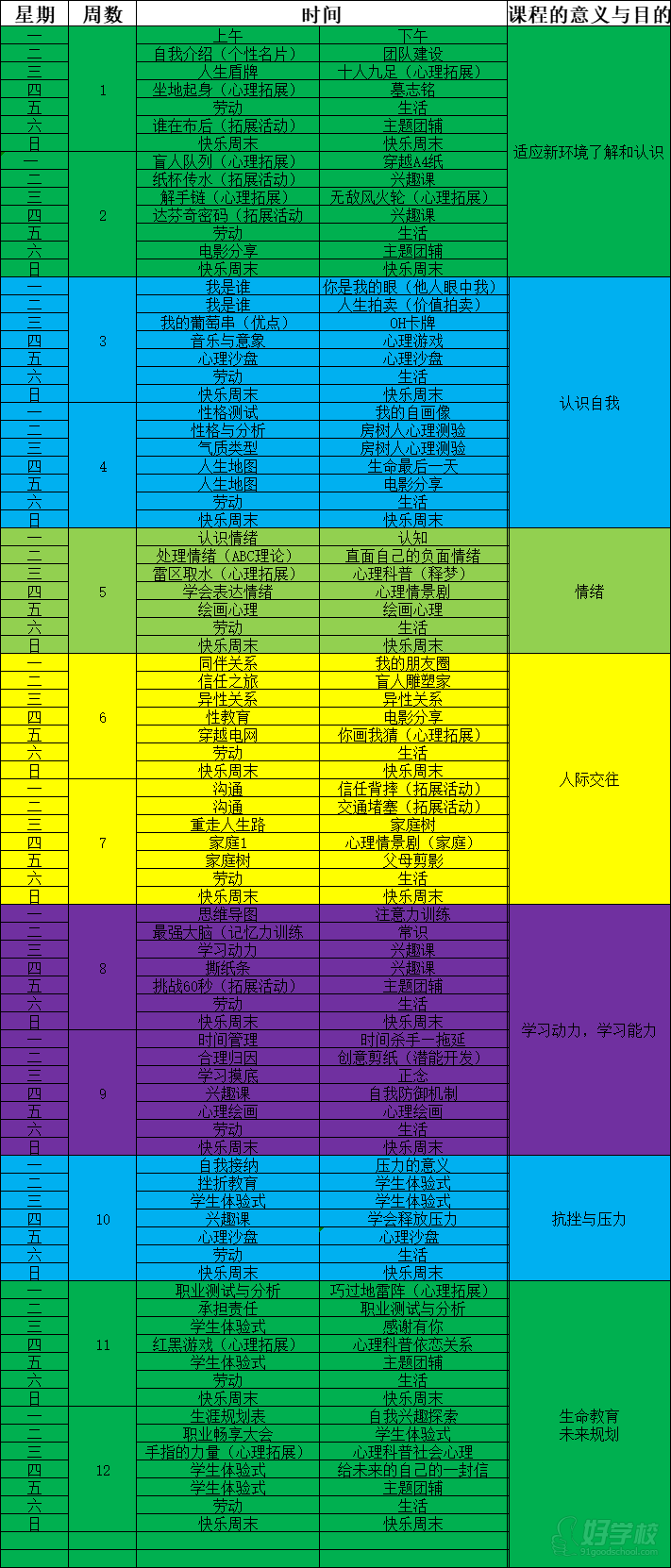 参照国际心理团体标准,学员入营后,根据具体情况分“大班、小班”。小班:严格控制在16名学员以内的小班制心理成长团体。大班:严格控制在30名学员以内的心理成长团体。