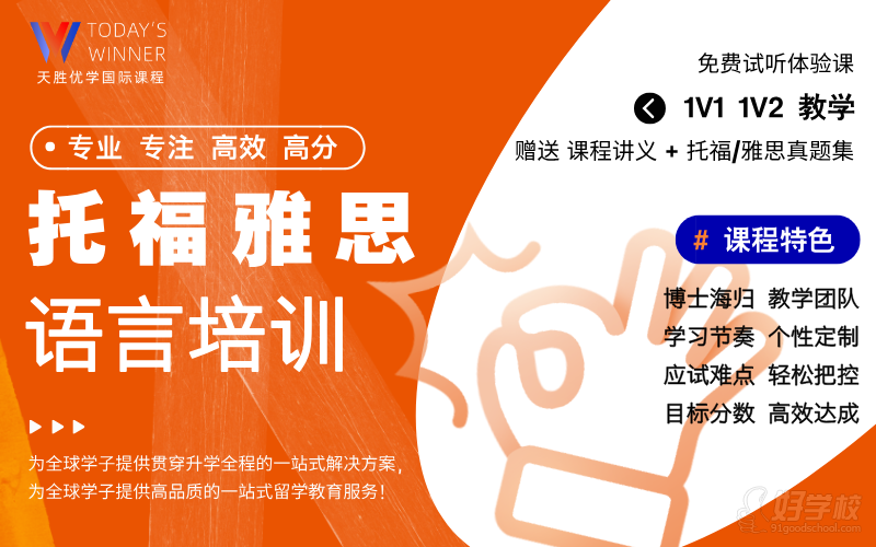 天胜优学国际课程专注于托福、雅思语言培训,秉持 “专业、专注、高效、高分” 的理念,为全球学子提供贯穿升学全程的一站式解决方案与高品质留学教育服务。