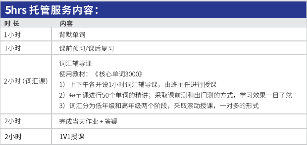 2H主课+2H词汇课 +4小时托管服务