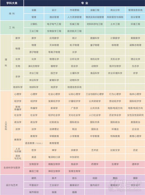 【美国常见专业分类】