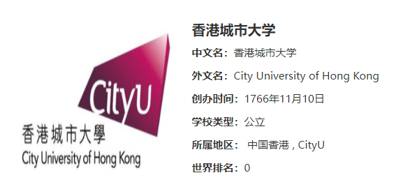 香港城市大学(City University of Hong Kong),简称城大(CityU),是一所坐落于香港九龙塘的公立研究型大学是香港特别行政区政府资助的八所大专院校之一,获教育部列入国家重点高校名单,为中俄工科大学联盟成员高校。学校原为1984年在九龙旺角建立的香港城市理工学院,1995年获政府授予自我评审资格,并更名为香港城市大学,1997年在原威灵顿中学旧址设立九龙湾分校。根据2016年英国QS大学排名,城大位居全球第55位,亚洲第7位,并被评为全球50所创校未满50年的大学第4名。在上海交大ARWU世界大学学术排名中,城大在工程领域位居全球24位,在社会科学与理科领域位居全球100150位,学校的数学学科位居全球22位,计算机科学位居45位。