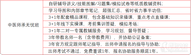 出师考试不通过,免费重读1年,报名协助服务顺延1年。