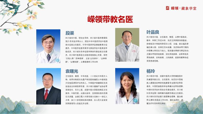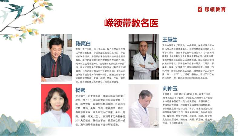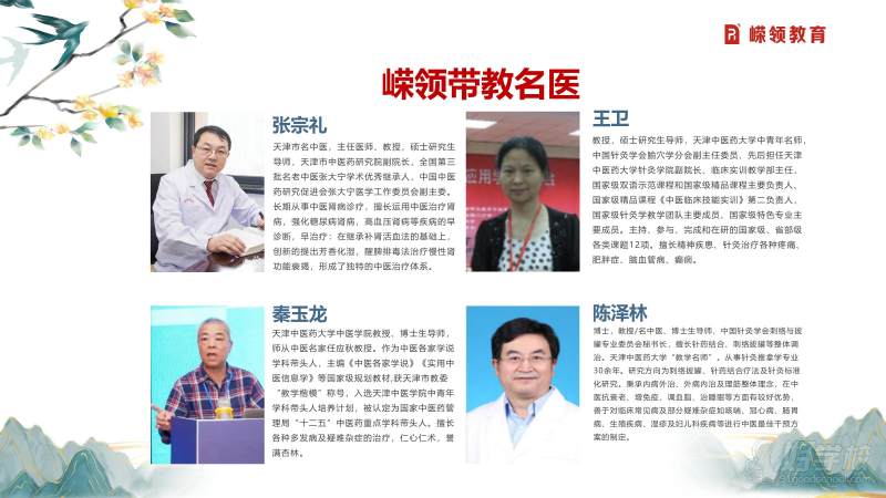 嵘领教育16年专注中医考培,天津,四川,重庆,陕西,江西建立了直属分校,以及全国20多家合作分校。先后与全国多所中医药大学和中医药学术团体达成战略合作,全力布局中医药教培和大健康职业培训,涉及中医师承/确有专长/中医专长医师/中医执业/中医助理药考护考/大健康职业资格培训。目前同央广网和天津电视台合作运营两档中医养生视频节目——央广网《央广营养课》,天津电视台《百医百顺》。