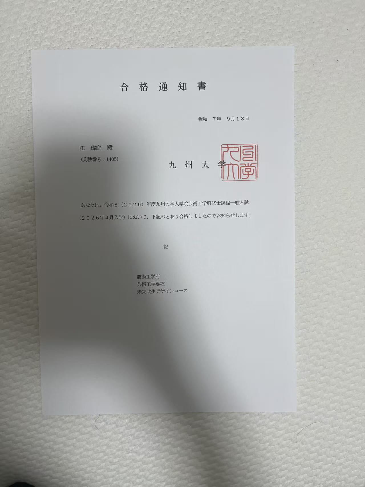 九州大学设计学硕士,在日多年,熟悉日本艺术的实际审查逻辑,擅长把学生的想法转成日本教授听得懂的「研究计划书+作品集结构」,对4月/10月入学节点及材料标准非常熟悉,可为学生制定个人化升学路线。